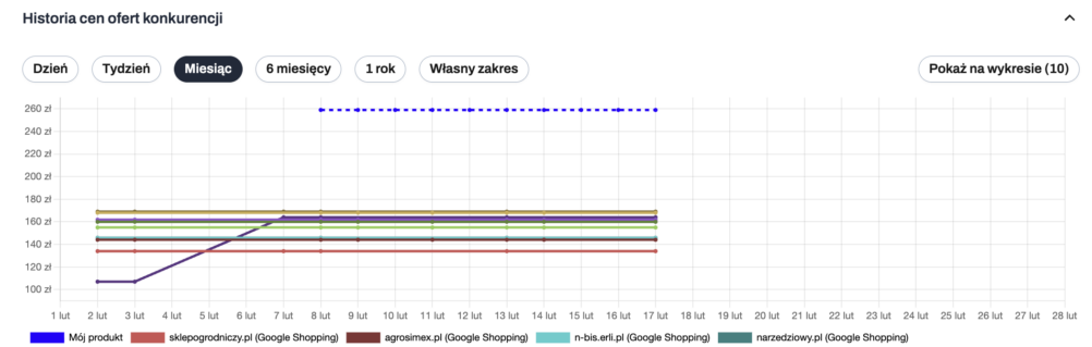 Poniżej znajduje się historia cen ofert konkurencji, która umożliwia analizę zmian cen w czasie.