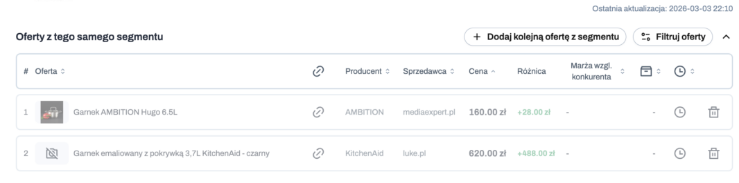 - filtrować oferty: kliknij Filtruj oferty, a następnie wybierz źródła zgodnie ze swoimi potrzebami; dzięki temu możesz skupić się na wybranym segmencie konkurencji