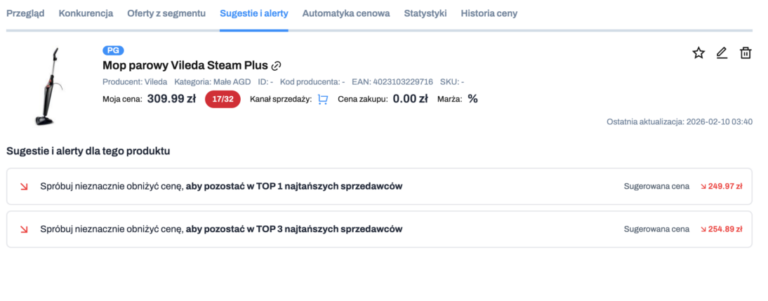 - obniżyć cenę, żeby pozostać w top 1 najtańszych sprzedawców