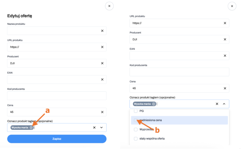Dodawanie tagu do ofert jest bardzo proste: