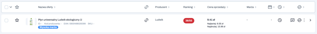 - nazwa oraz ID, kod producenta, EAN i SKU