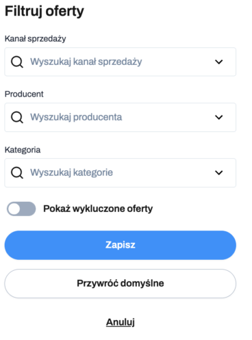 Przywróć oferty – ponowne włączenie wcześniej wykluczonych ofert.