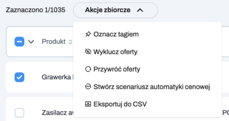 Oznacz tagiem – przypisanie wybranego tagu do zaznaczonych ofert.